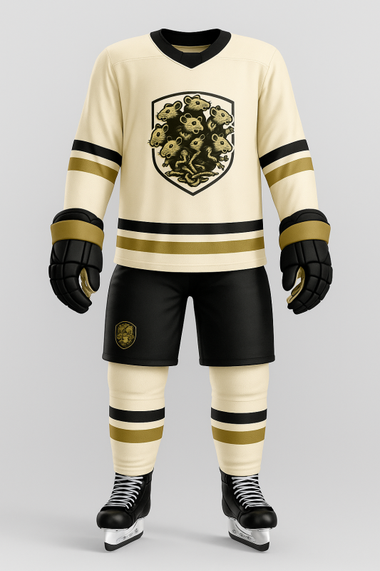 Welcome to the next installment of the series! Day 2 of 30. This particular concept revolved around a team name based off of a popular phrase, called the ‘Rat Kings‘. We took this as a chance to grow our custom hockey jersey collection with a fun, bold new concept.
