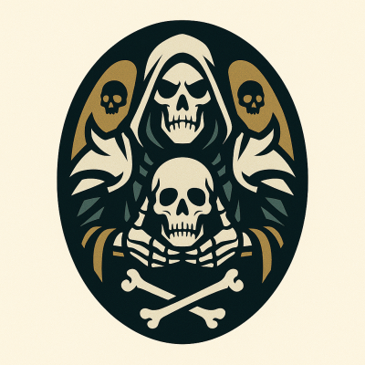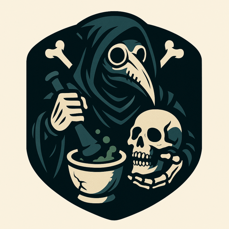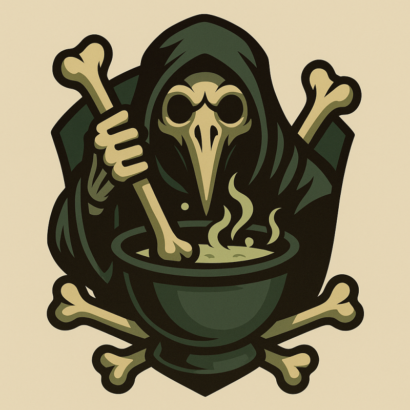 ‘Can you create a logo based on option theme 1. “Bonewright of the Blight”? Use the suggested corresponding crest style as well. Please only use a maximum of 5 hex colors for the logo. Please use clean sharp lines and color with clear delineation of color – no grain, noise, or mottled results. Logo only, don’t include the text please.’