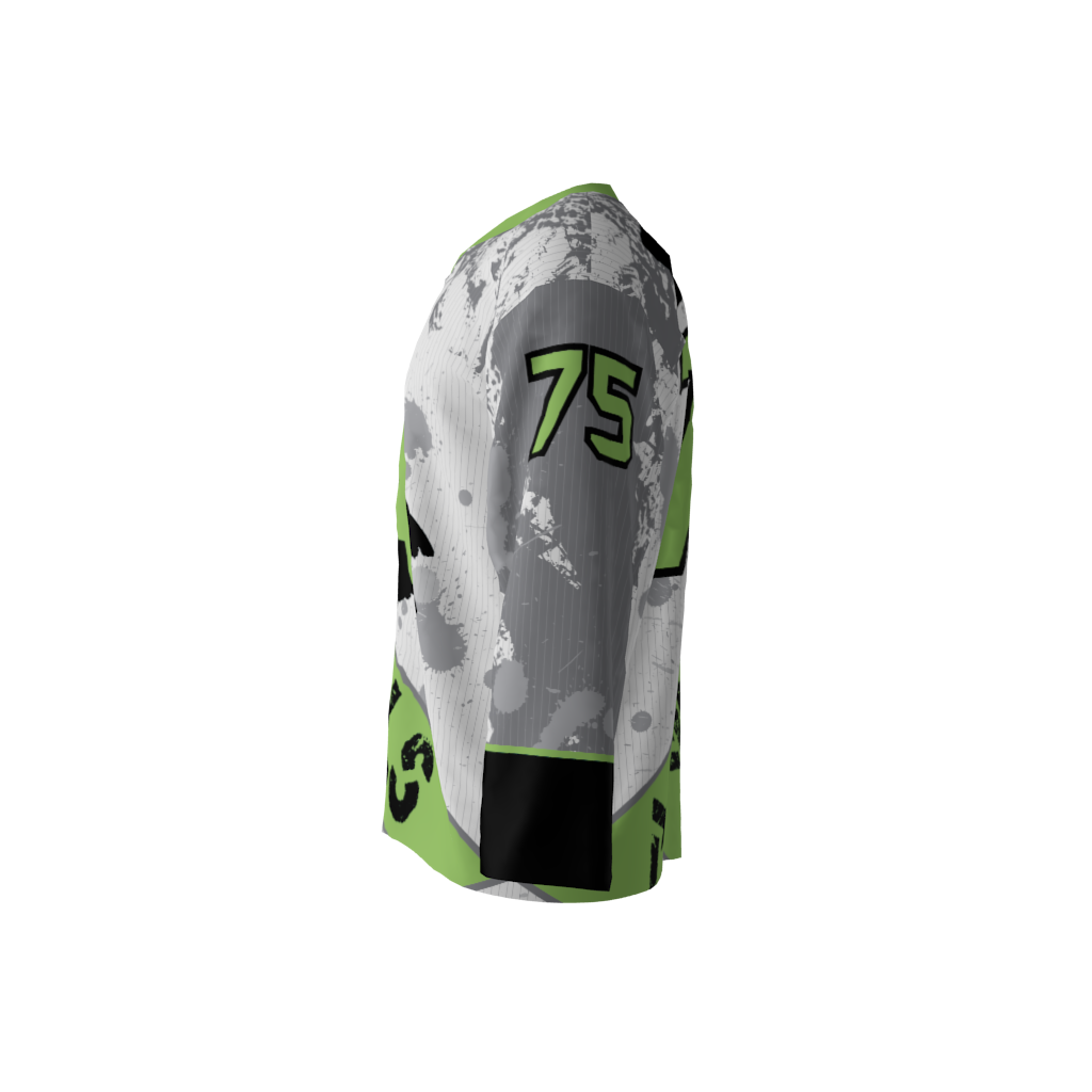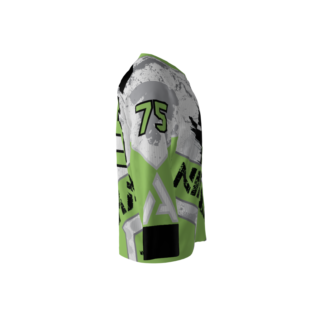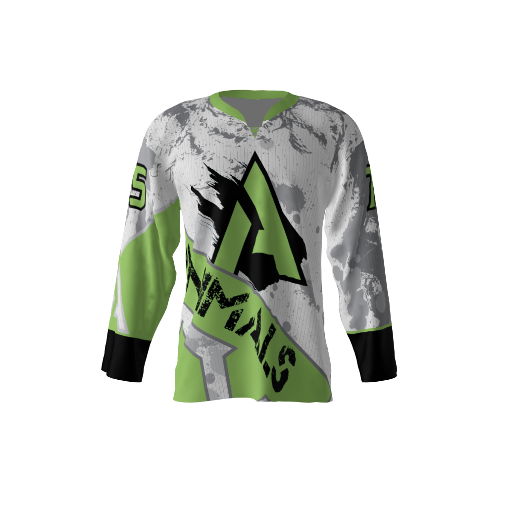 Custom dye sublimated roller hockey jersey design for the Animals. Complete flexibility in regards to color and logo.