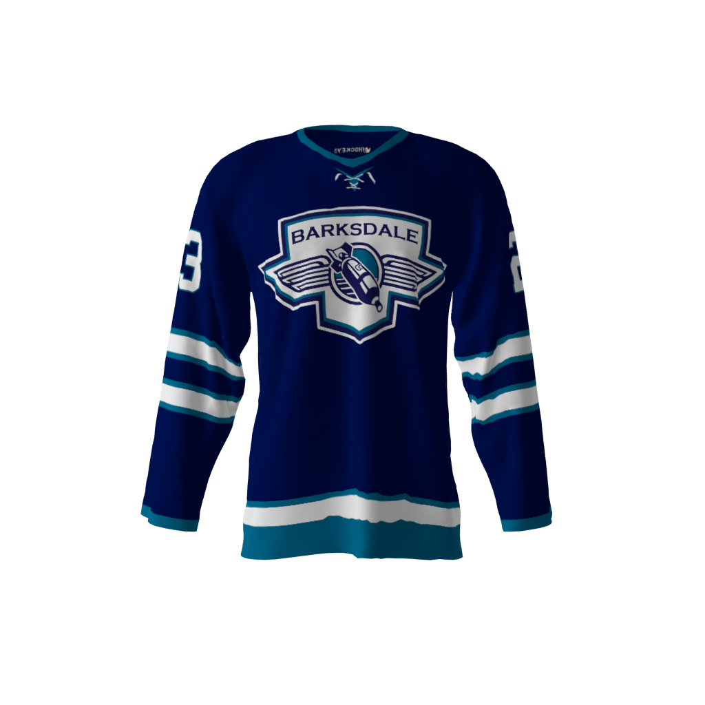 Barksdale Bombers custom dye sublimated hockey jersey. Personalize it with your own name and number.