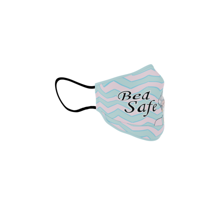 Sublimated Bea Safe face mask! Build your own personalized face mask, add customized content right in our builder! These masks are reusable as they are machine washable. Our mask construction consists of materials made with a soft polyester micromesh blend. Each mask is built constructed with a filter pocket. One complimentary PM 2.5 carbon filter comes with your mask purchase – suggested filter use time is 48-72 hours. Adult and youth size. One size fits most. NOTE: This product is NOT a rated mask and is meant for everyday usage, NOT for medical use. These masks help with basic daily protection. For health and safety precautions, all Personal Protective Equipment (PPE) Products are not returnable and not refundable.
