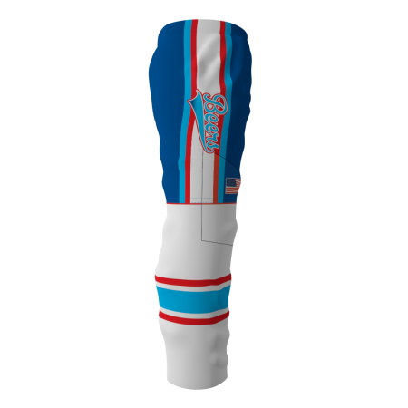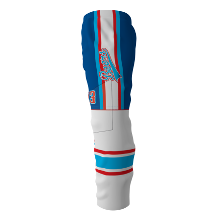 Beers custom roller hockey pants. These pants look amazing paired with the Beers jerseys! Fully vector. Reinforced knees. Drawstring waist. Numbers on the pants are optional at no additional cost.