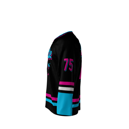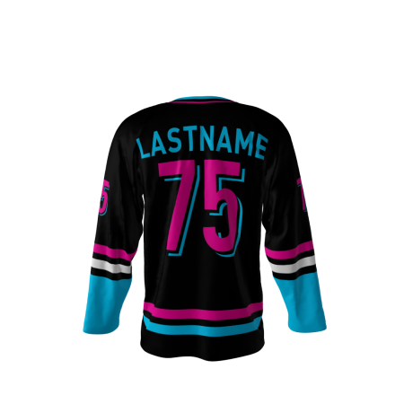 Caliente Pantalones Miami Vice style sublimated custom hockey jersey. Customize this jersey with your own name and number.