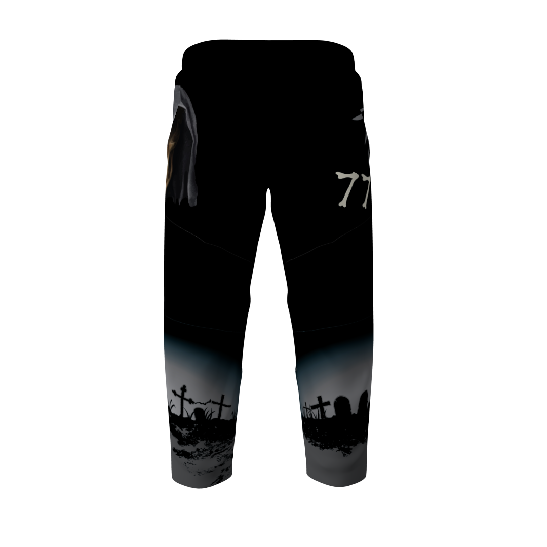 Death custom roller hockey pants. These pants look amazing paired with the Death jerseys! Fully vector. Reinforced knees. Drawstring waist. Numbers on the pants are optional at no additional cost.