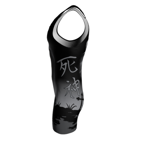 Custom Dye Sublimated Death Wrestling Singlet. The designs are dyed right into the fabric for a smooth, vibrant, lightweight, high performing jersey. We cannot use unauthorized licensed logos (example: NBA, NHL, MLB, NFL team logos). If you upload licensed logos we will be forced to refund your order.