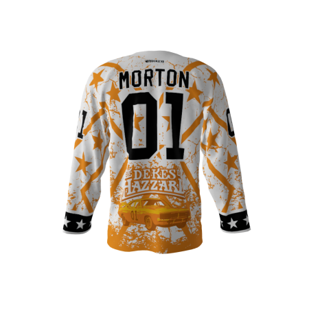 Dekes of Hazard custom dye sublimated hockey jersey. Personalize it with your own name and number.
