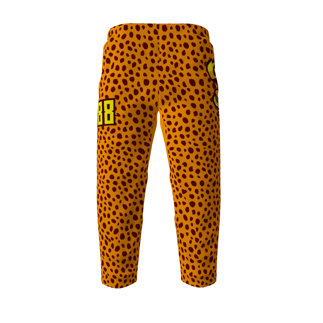 Flaming Hot Cheetahs custom roller hockey pants. These pants look amazing paired with the Flaming Hot Cheetahs Orange Hockey Jersey! Fully vector. Reinforced knees. Drawstring waist. Numbers on the pants are optional at no additional cost.
