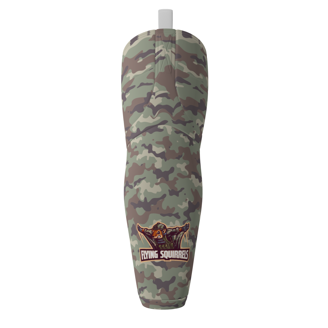 Flying Squirrels custom dye sublimated ice hockey socks. Pair these with the Flying Squirrels hockey jersey. These socks have Velcro tabs and are similar to edge brand socks. The socks are produced with a moisture-wicking polyester material.