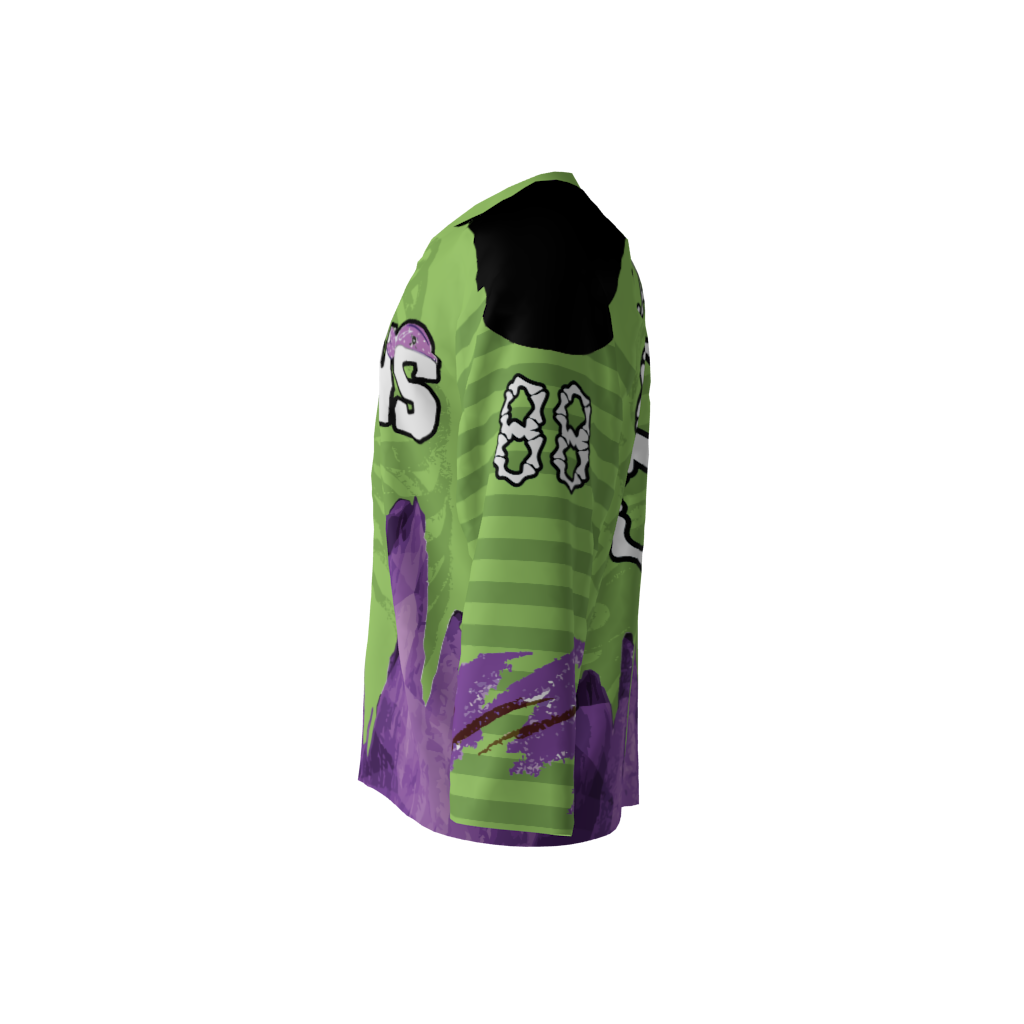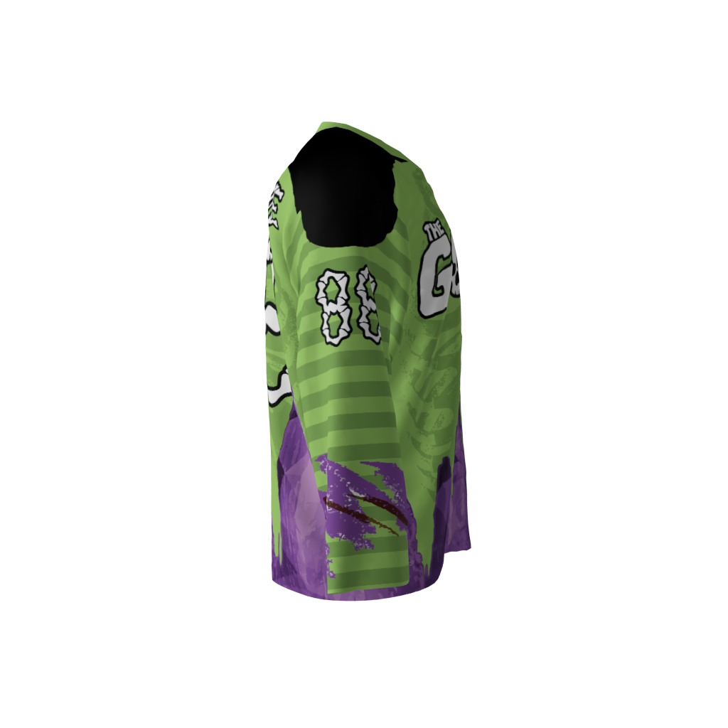 Goons Custom Dye Sublimated Jersey. You can customize with your name and number! Since all of our product offerings are customized specifically for you, you have the ability to change the colors and team names on any product. You want to swap the colors, team name, or logo from another product you’ve seen on our site? Or even put your own logo on instead? Not a problem. These simple alterations come at NO additional cost, either. Simply request any of the above in your order notes upon ordering. You’ll receive a proof once the order is received.