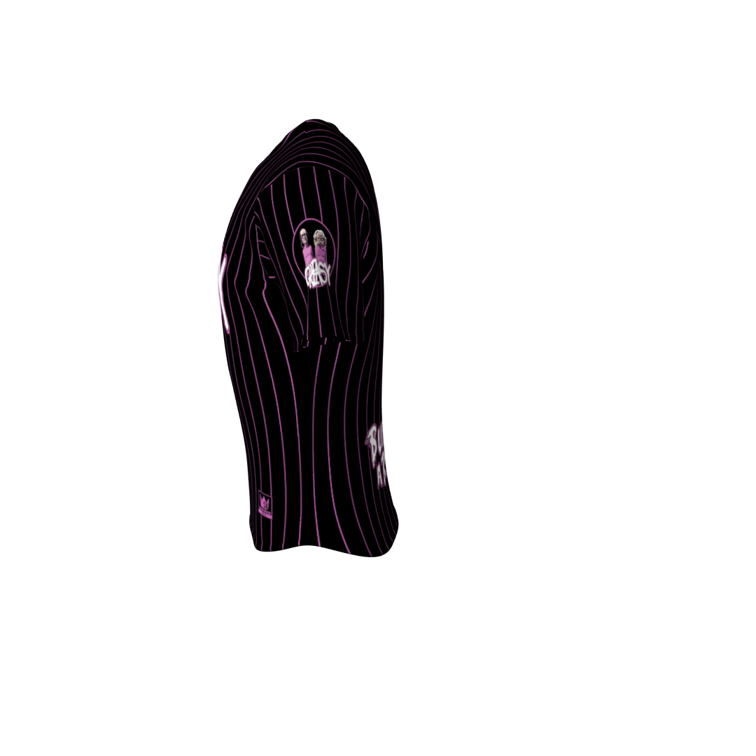 Greasy custom dye sublimated full-button baseball jersey. Available in any color combination. Materials and sizing information available here.