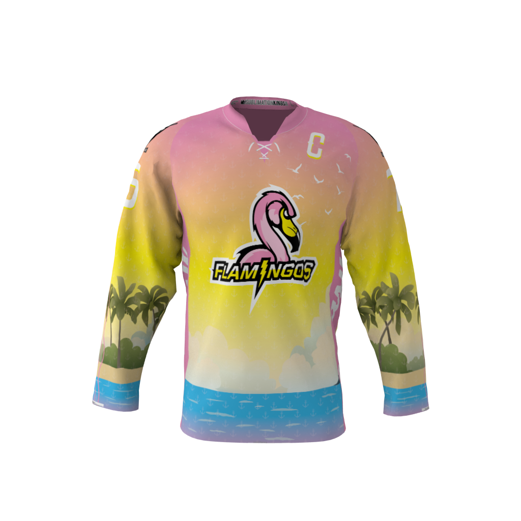 Tags: custom hockey jersey, flamingos, greasy, greasy flamingos, hockey, hockey jersey, inline, jersey, roller, sublimation kings