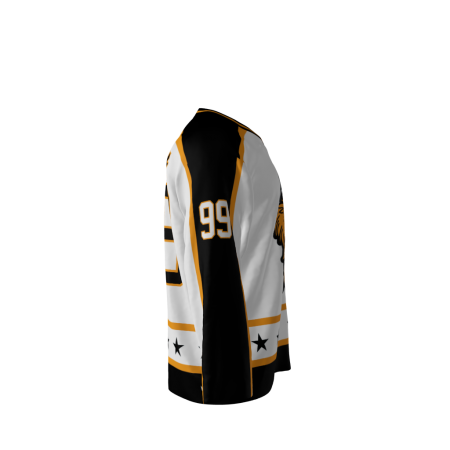 Gritty Gang Custom Dye Sublimated Hockey Jersey. You can customize with your name and number! Since all of our product offerings are customized specifically for you, you have the ability to change the colors and team names on any product. You want to swap the colors, team name, or logo from another product you’ve seen on our site? Or even put your own logo on instead? Not a problem. These simple alterations come at NO additional cost, either. Simply request any of the above in your order notes upon ordering. You’ll receive a proof once the order is received. Sizing information here.