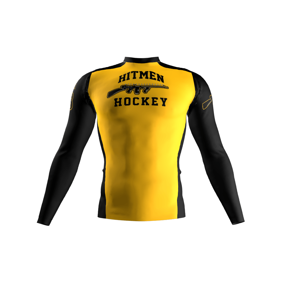 Hitmen custom compression shirt. Custom Hockey Compression Shirts produced on Moisture-Wicking Compression Material. Available in Short Sleeve, Sleeveless and Long Sleeve. Don’t see what you want? Get in touch with us we’ll create what you’re looking for.