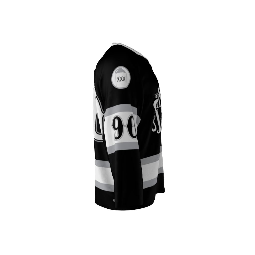 Tags: black, custom, custom hockey jersey, dye, dye sublimation, hockey, indiana, indiana whiskey, inline, jersey, outlaw, roller, SK, sublimated, sublimation, sublimation kings, whiskey