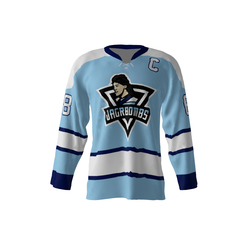 Jagr Bombs Custom Dye Sublimated Jersey. You’re familiar with the legendary mullet of the 1990’s. Now you can hearken back to the days of Pittsburgh’s classic base jersey design…but…emblazoned with a Jagr Bombs logo crested in the shape you might have come to expect. You can customize with your name and number! Since all of our product offerings are customized specifically for you, you have the ability to change the colors and team names on any product. You want to swap the colors, team name, or logo from another product you’ve seen on our site? Or even put your own logo on instead? Not a problem. These simple alterations come at NO additional cost, either. Simply request any of the above in your order notes upon ordering. You’ll receive a proof once the order is received.