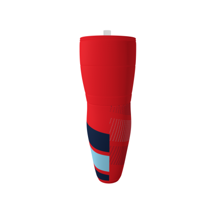 Jesters custom dye sublimated ice hockey socks. Pair these with the Jesters hockey jersey. These socks have Velcro tabs and are similar to edge brand socks. The socks are produced with a moisture-wicking polyester material.