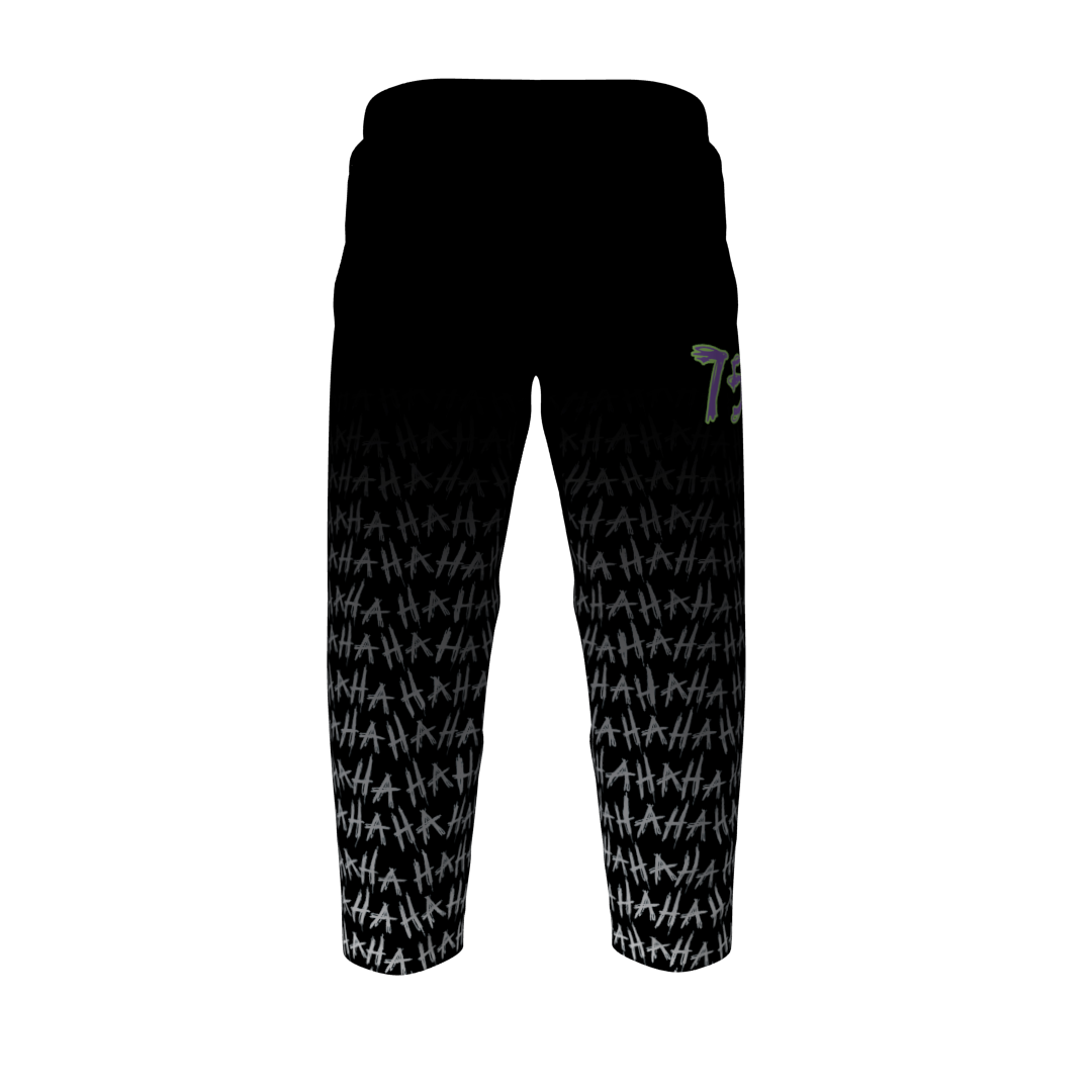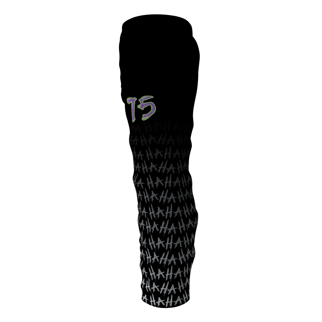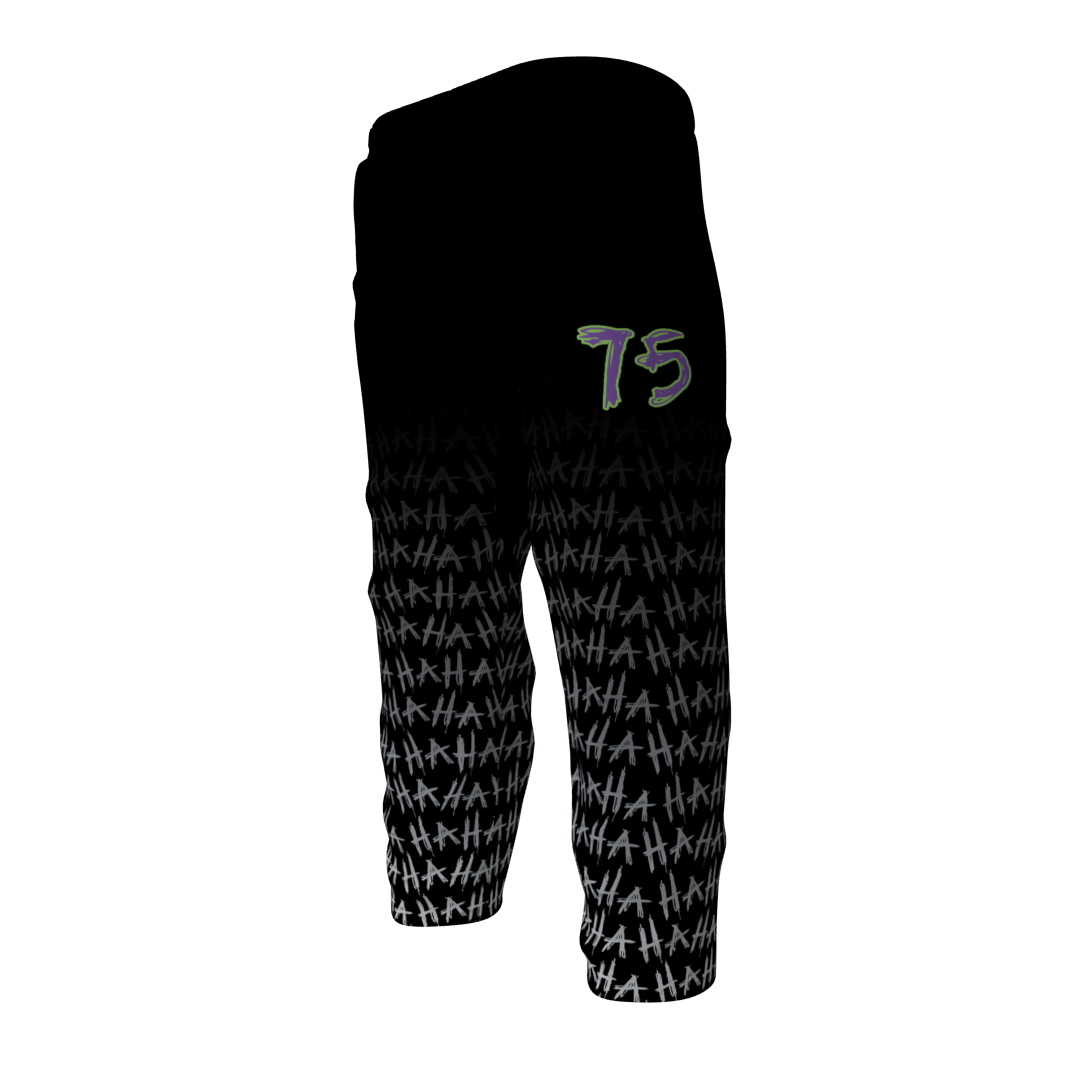 Jokers custom roller hockey pants. These pants look amazing paired with the Jokers jerseys! Fully vector. Reinforced knees. Drawstring waist. Numbers on the pants are optional at no additional cost.