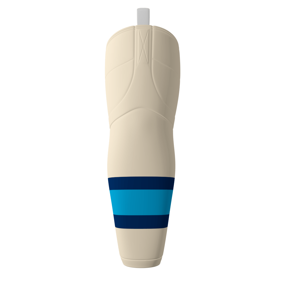 Leftovers custom dye sublimated ice hockey socks. These socks have Velcro tabs and are similar to edge brand socks. The socks are produced with a moisture-wicking polyester material.