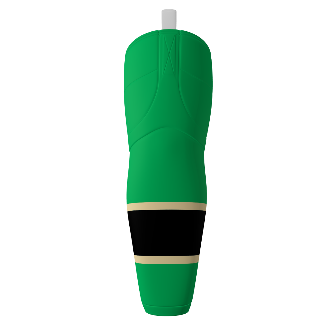 Mutiny custom dye sublimated ice hockey socks. These socks have Velcro tabs and are similar to edge brand socks. The socks are produced with a moisture-wicking polyester material.