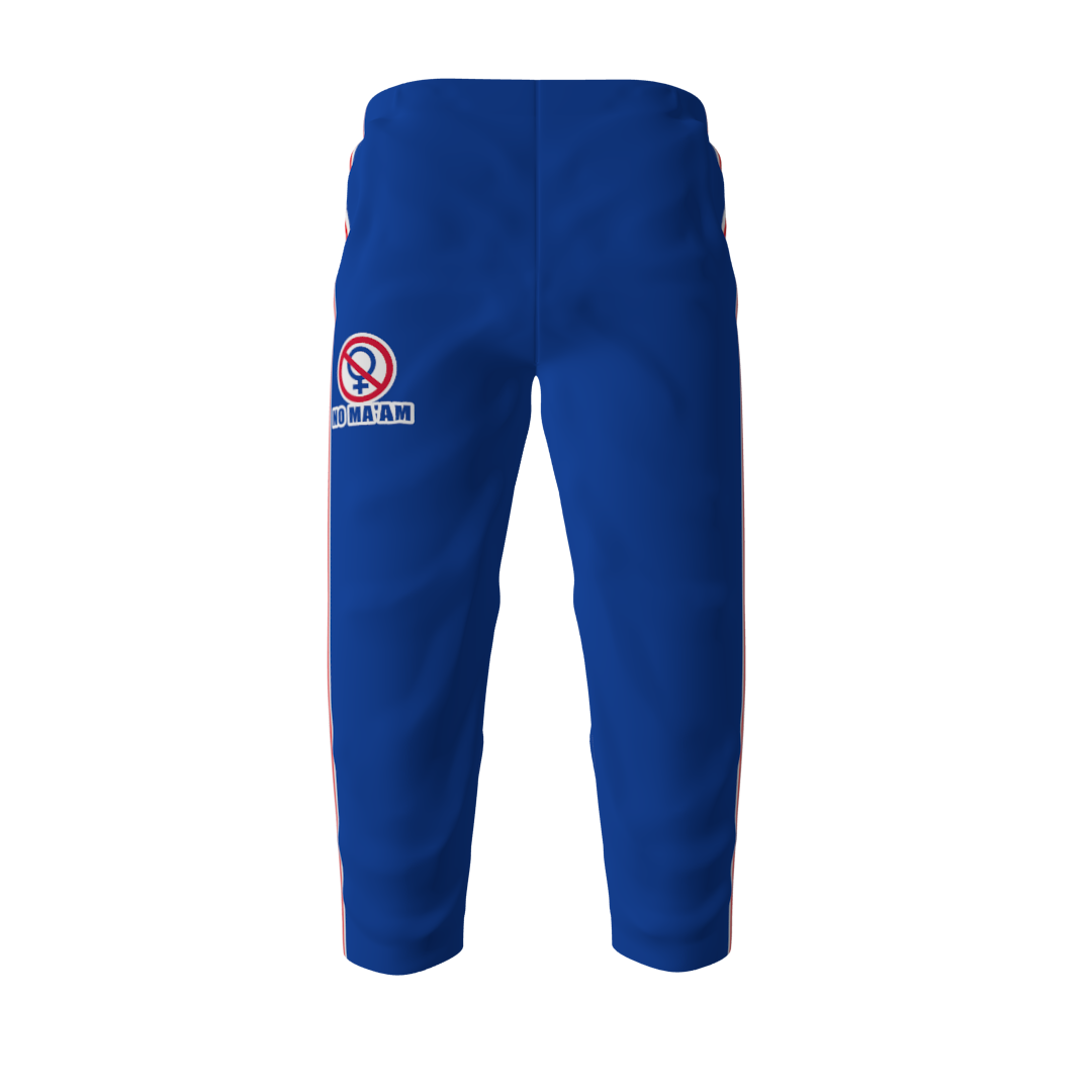 No Ma’am custom roller hockey pants. These pants look amazing paired with the No Ma’am Hockey jerseys! Reinforced knees. Drawstring waist.