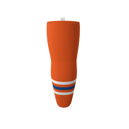 No Regretzkys Orange custom dye sublimated ice hockey socks. Pair these with the No Regretzkys hockey jersey. These socks have Velcro tabs and are similar to edge brand socks. The socks are produced with a moisture-wicking polyester material.