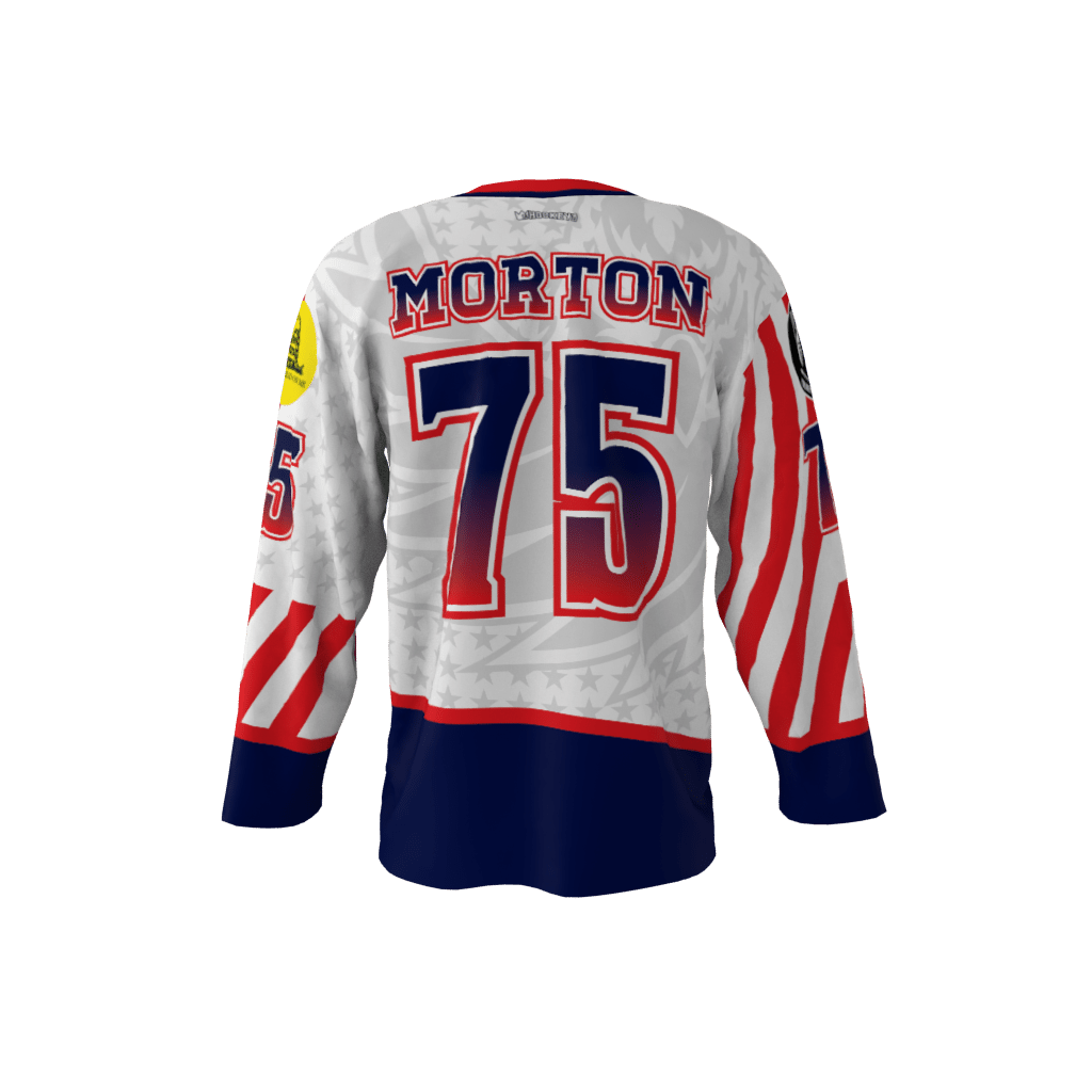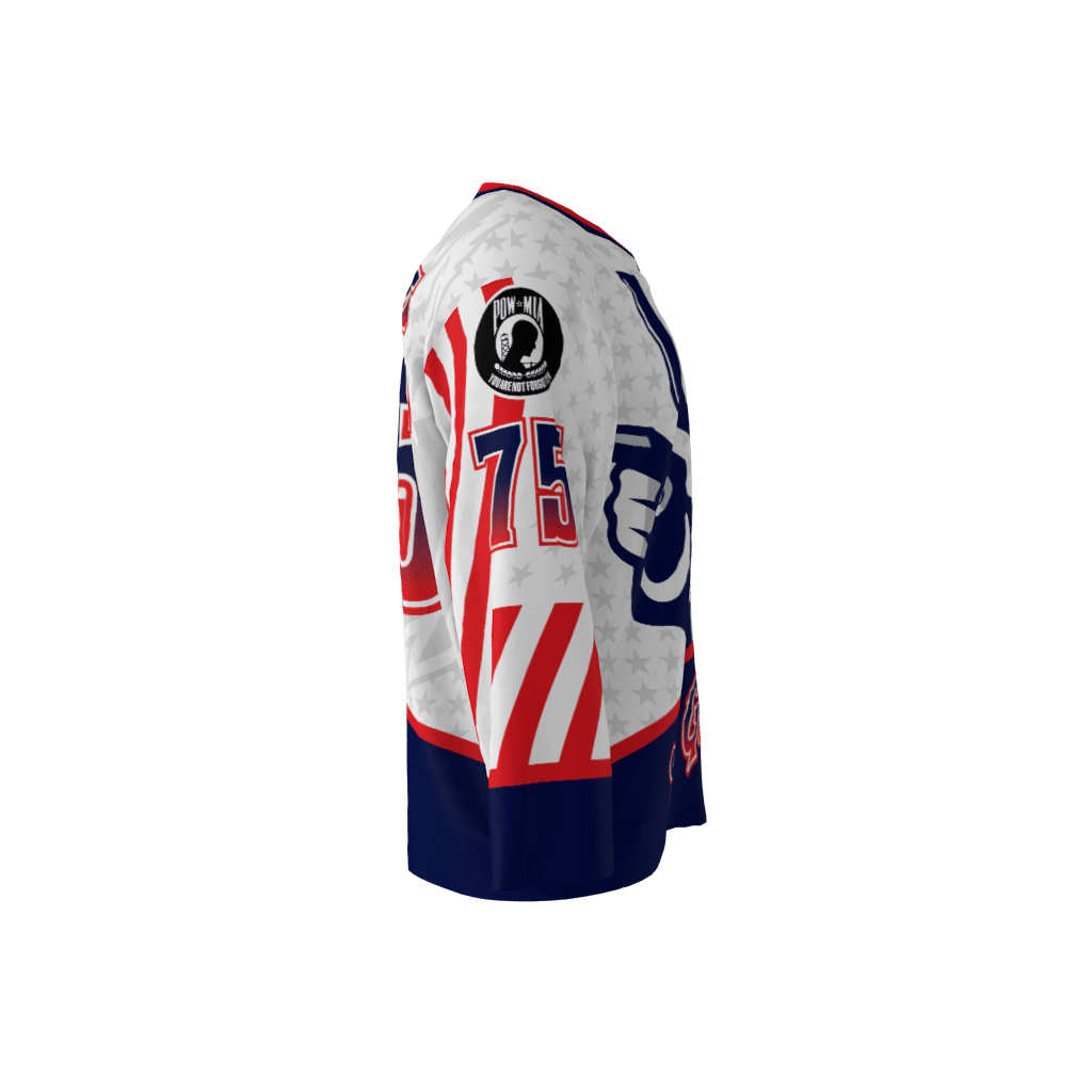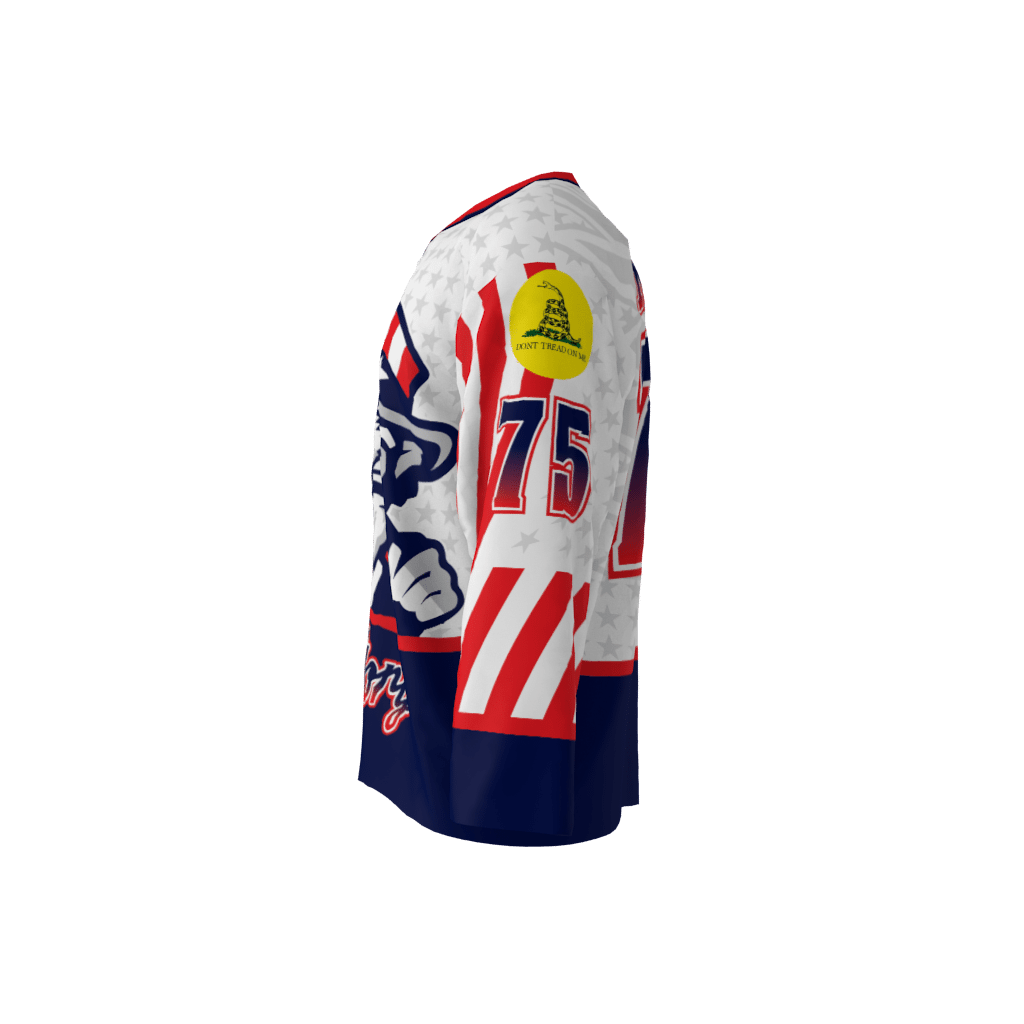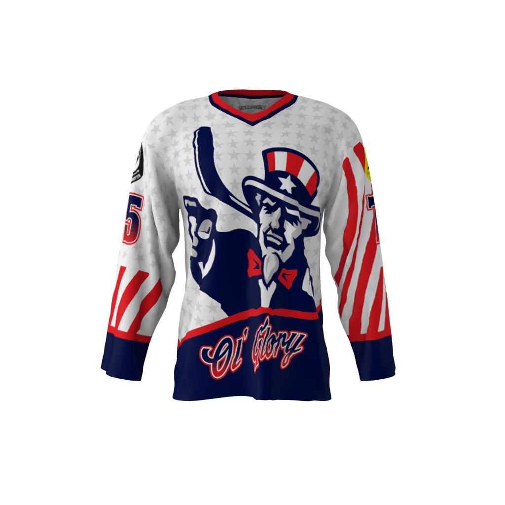 Ol’ Glory dye sublimated custom hockey jersey. You can customize with your name and number!