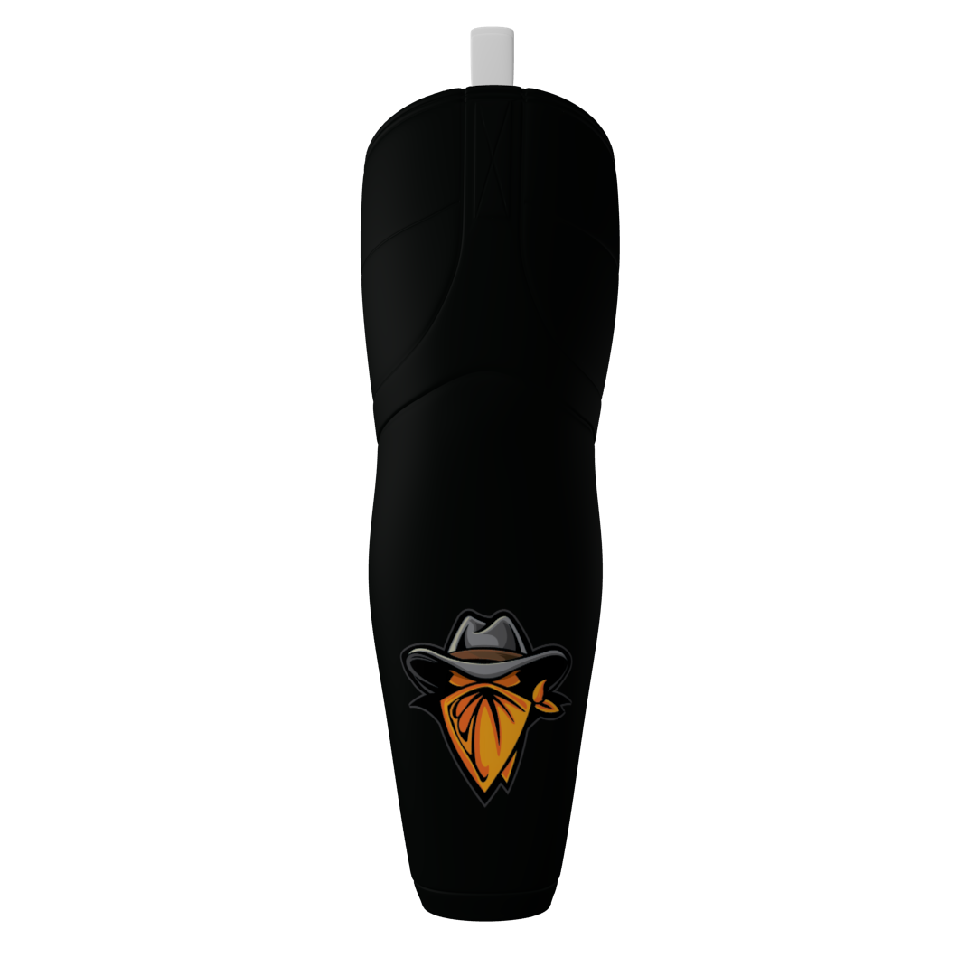 Outlaws custom dye sublimated ice hockey socks. Pair these with the Outlaws hockey jersey. These socks have Velcro tabs and are similar to edge brand socks. The socks are produced with a moisture-wicking polyester material.