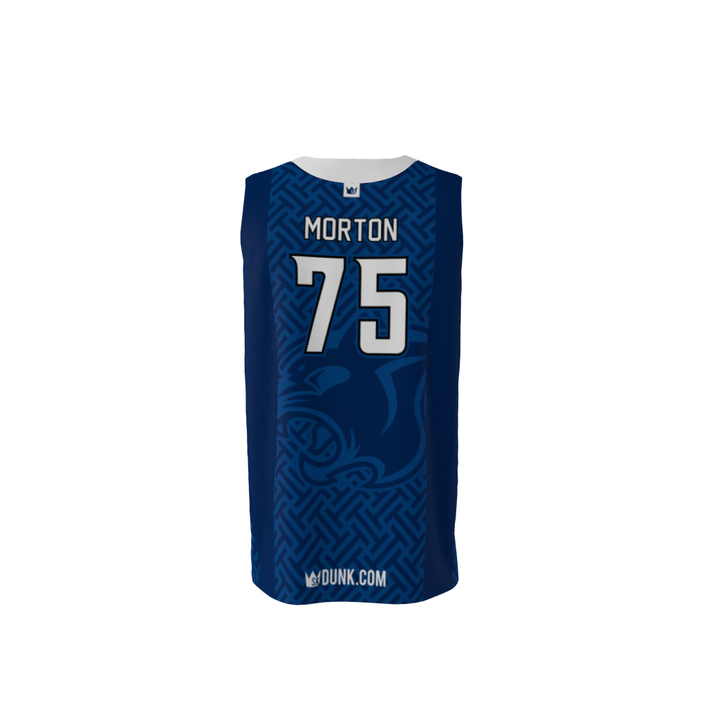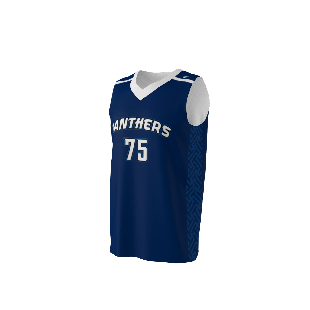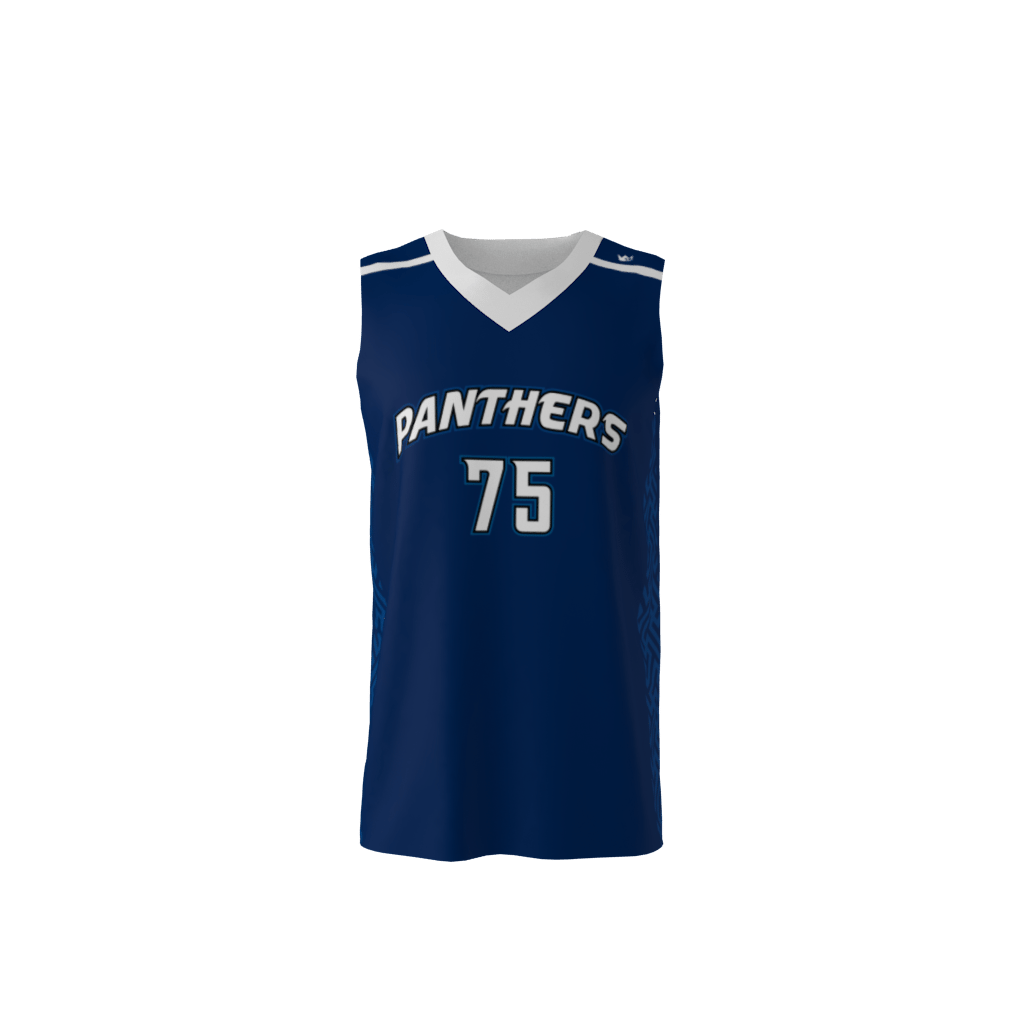 Panthers custom dye sublimated basketball jersey. Colors and logos can be modified to meet your needs. Customize with your name and number!