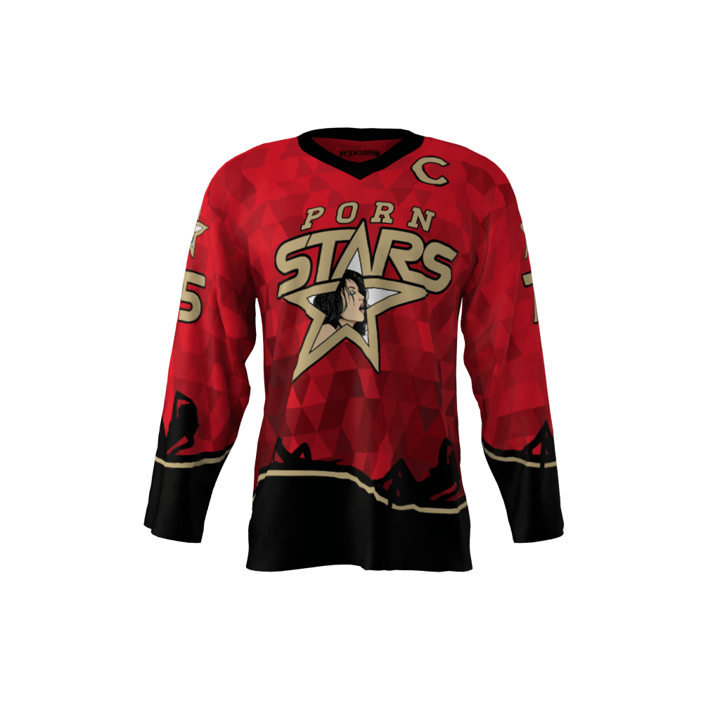 Porn Stars custom dye sublimated hockey jersey. Personalize it with your own name and number.