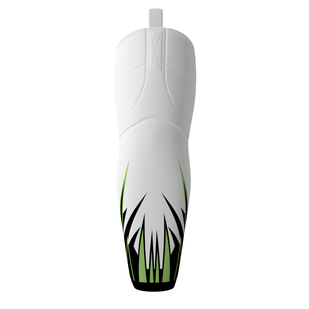 Puck Buddies custom dye sublimated ice hockey socks. These socks have Velcro tabs and are similar to edge brand socks. The socks are produced with a moisture-wicking polyester material.