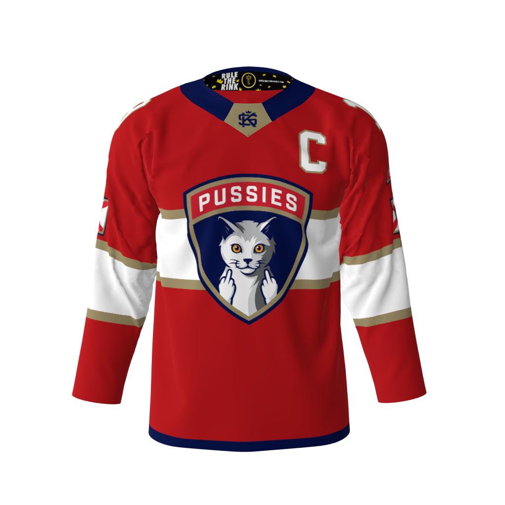 Tags: cat nip, cat scratch, cats, catty, champs, custom pro-style hockey jerseys, feline, florida, panthers, panthers jersey, pu$$ies, pussy cat, Red, tawt i say a putty cat, vegas gold