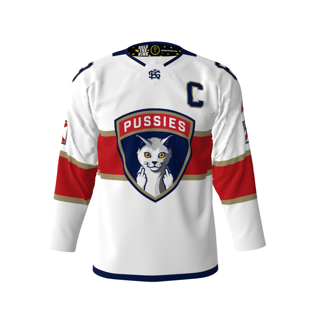 The Pu$$ies White Hockey Jersey! These cats just don’t give a @#$%. You can customize with your name and number!