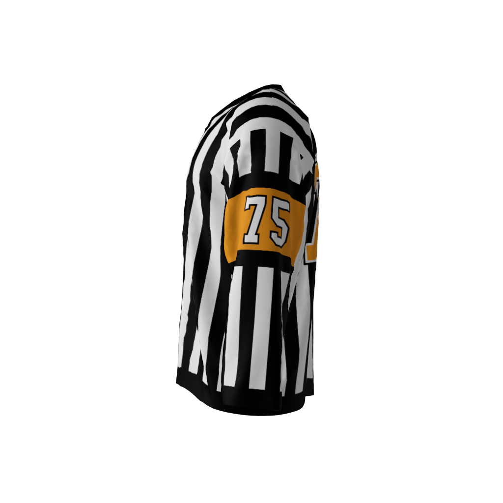 Referee Custom Dye Sublimated Jersey. You can customize with your name and number! Since all of our product offerings are customized specifically for you, you have the ability to change the colors and team names on any product. You want to swap the colors, team name, or logo from another product you’ve seen on our site? Or even put your own logo on instead? Not a problem. These simple alterations come at NO additional cost, either. Simply request any of the above in your order notes upon ordering. You’ll receive a proof once the order is received.