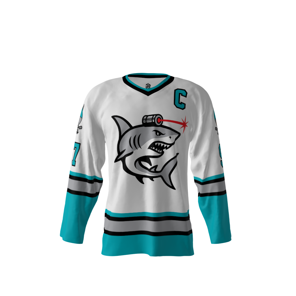 Sharks with frickin’ laser beams attached to their heads White Hockey Jersey! You know, I have one simple request, and that is to have sharks with frickin’ laser beams attached to their heads!