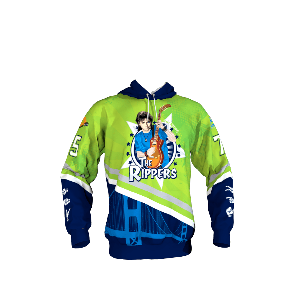 The Rippers custom sublimated hoodie. Add your name and number for complete customization!