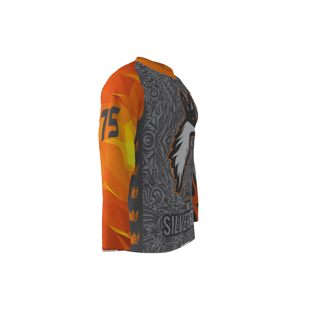Tags: custom, dye sublimation, hockey, inline, jersey, Orange, roller, Silver, SK, sublimation kings, the silver fox