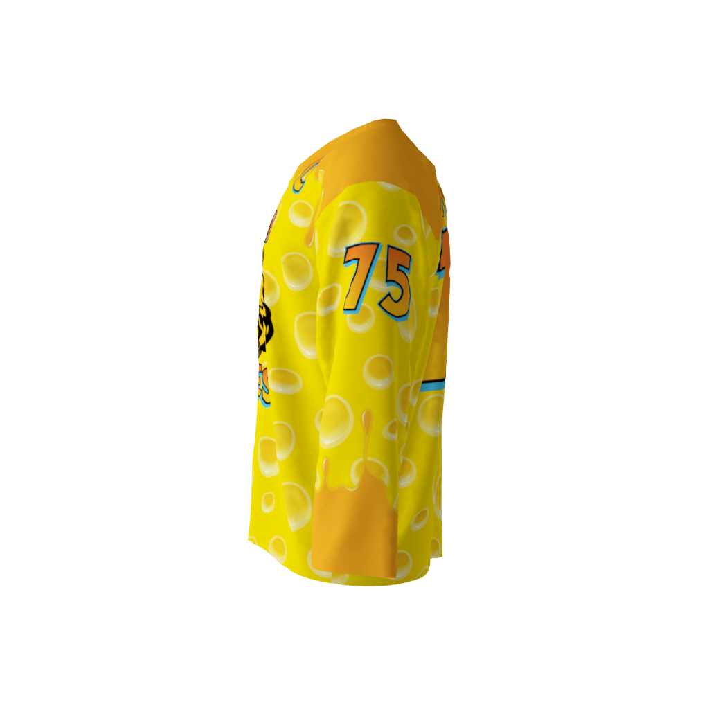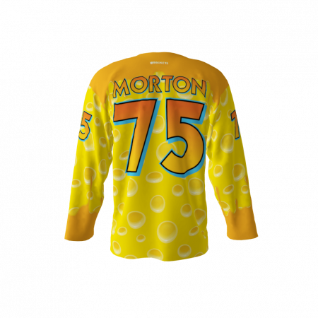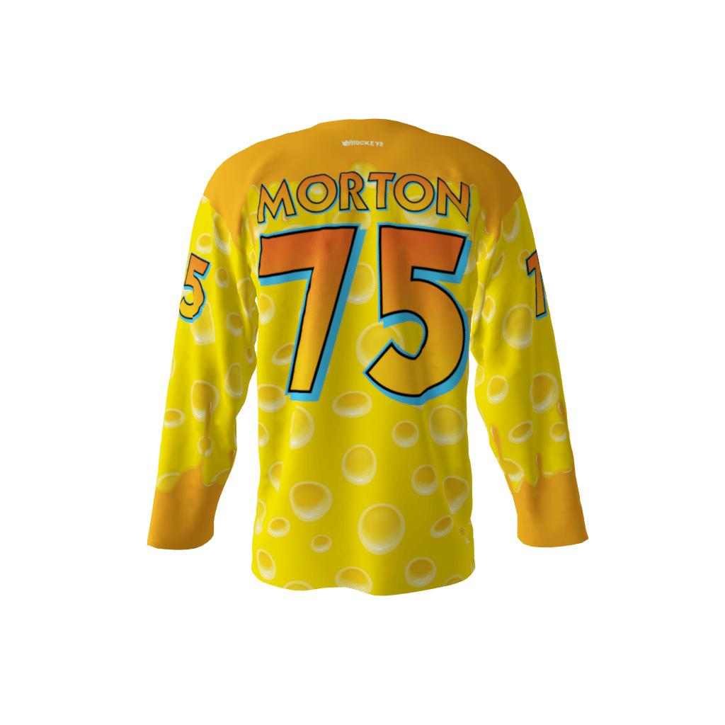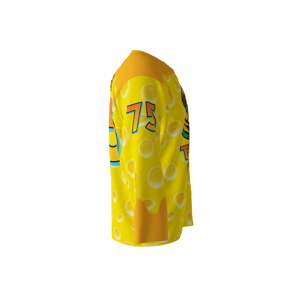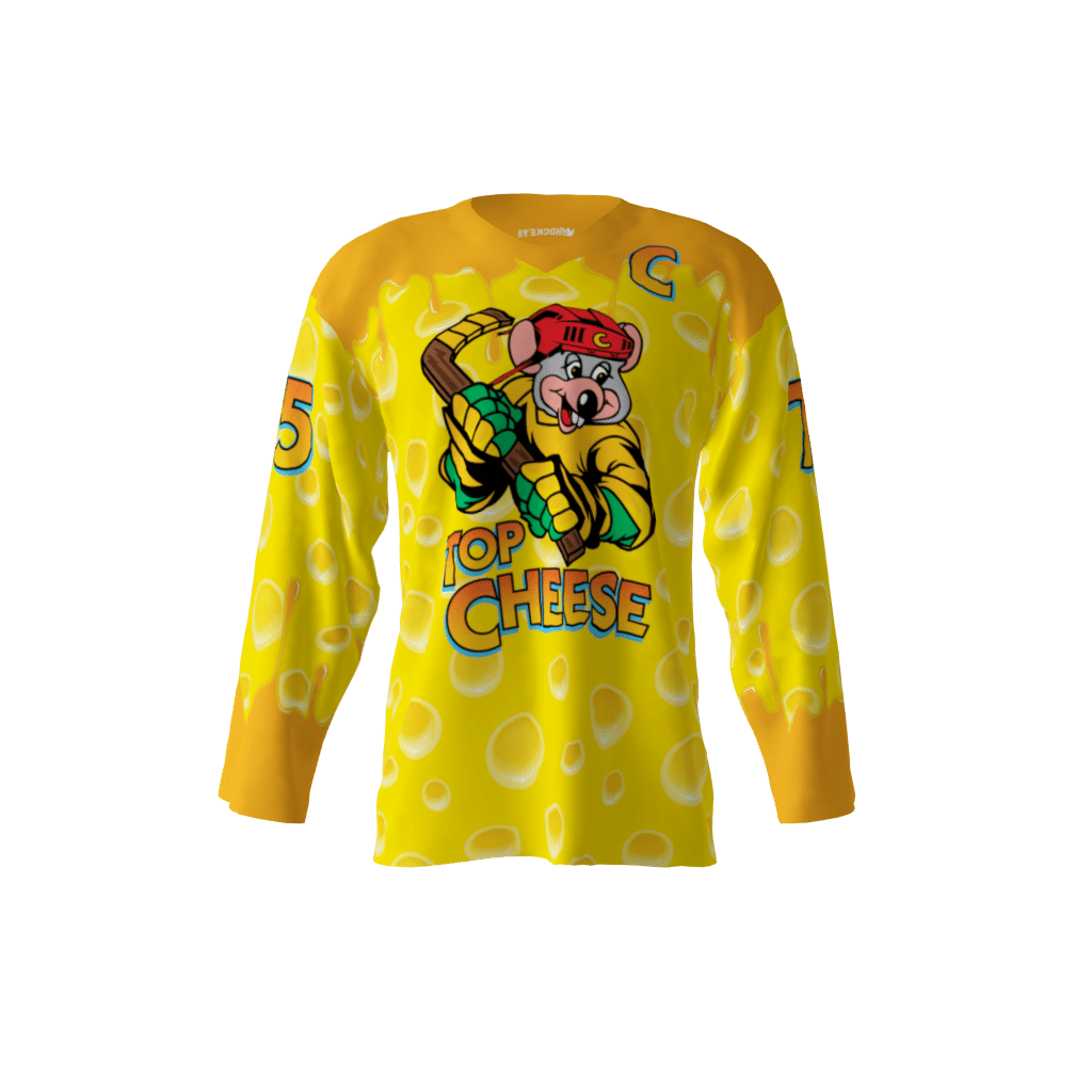 Top Cheese custom dye sublimated hockey jersey. Personalize it with your own name and number.