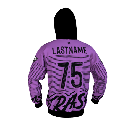 Trash Pandas Purple custom sublimated hoodie. Add your name and number for complete customization!