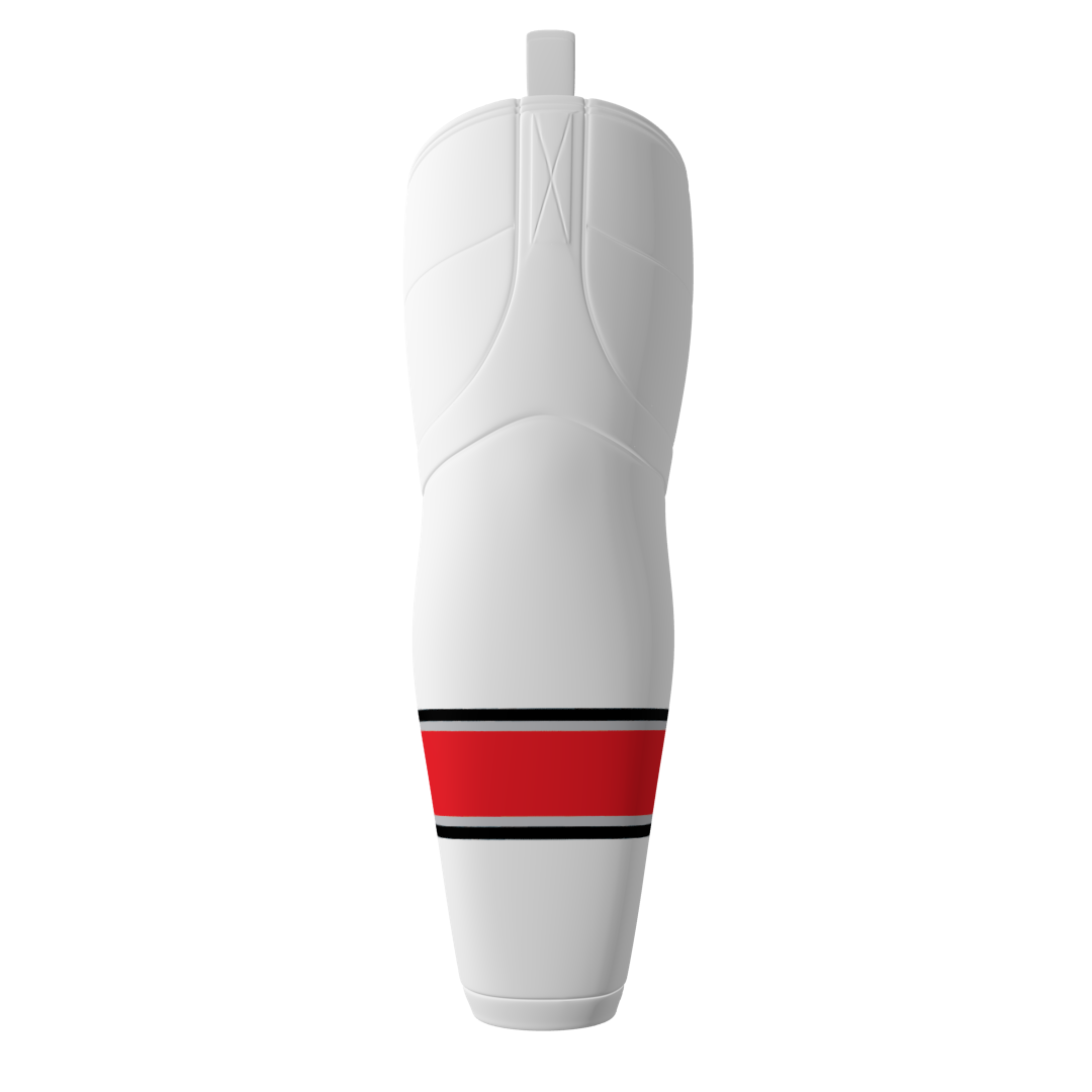 Traverse City North Stars Stripe custom dye sublimated ice hockey socks. These socks have Velcro tabs and are similar to edge brand socks. The socks are produced with a moisture-wicking polyester material.