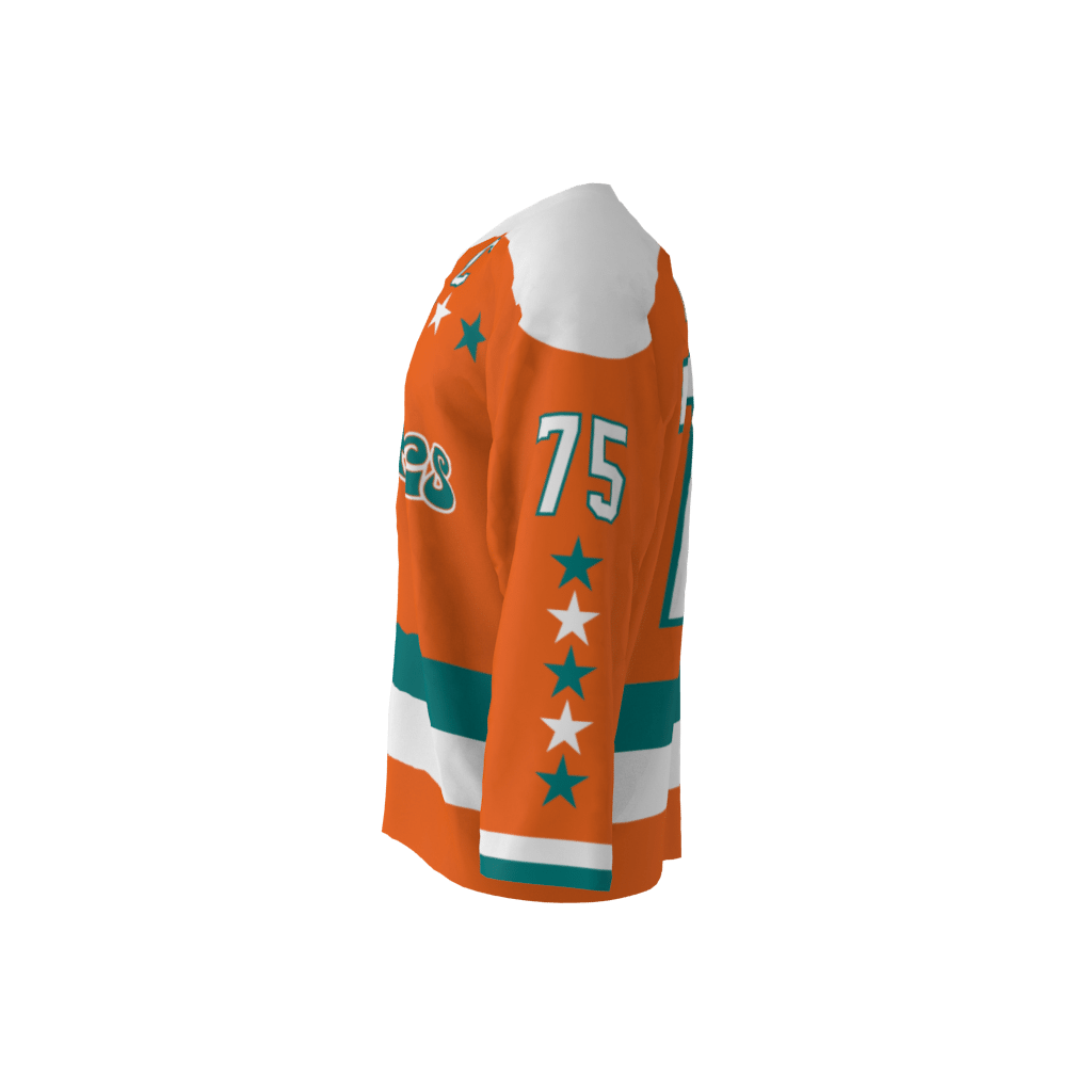 Tropics orange dye sublimated custom hockey jersey. You can customize with your name and number!