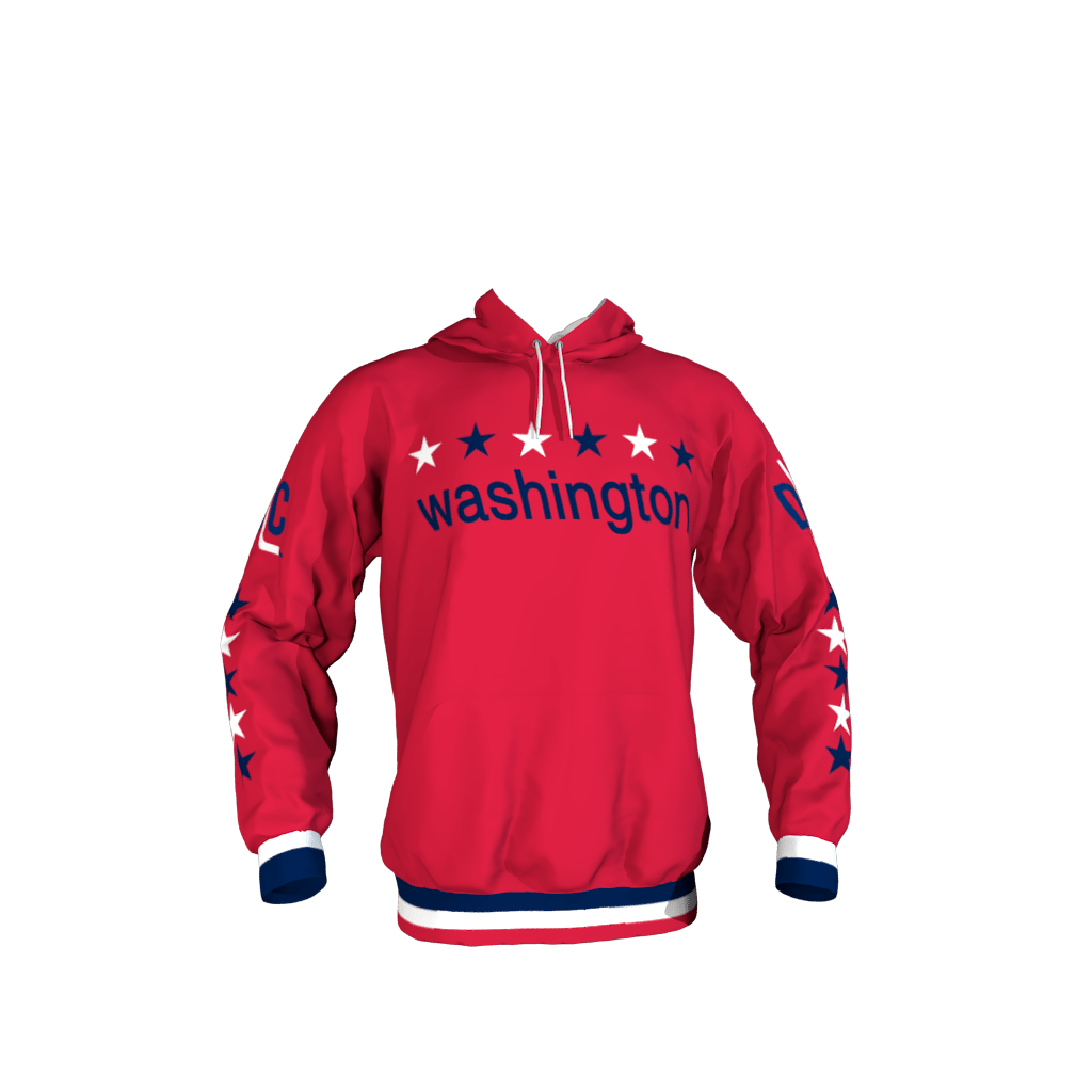 Support our nations captial with the patriotic Washington hoodie. Red, white and blue adorn this hoodie representing D.C. Personalize it with details in the notes at checkout.