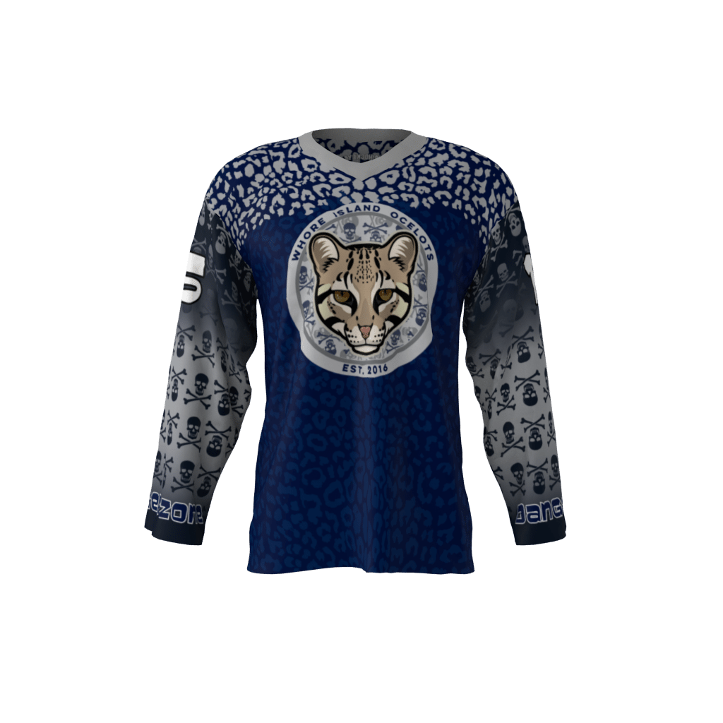 Whore Island Ocelots dye sublimated custom hockey jersey. You can customize with your name and number!